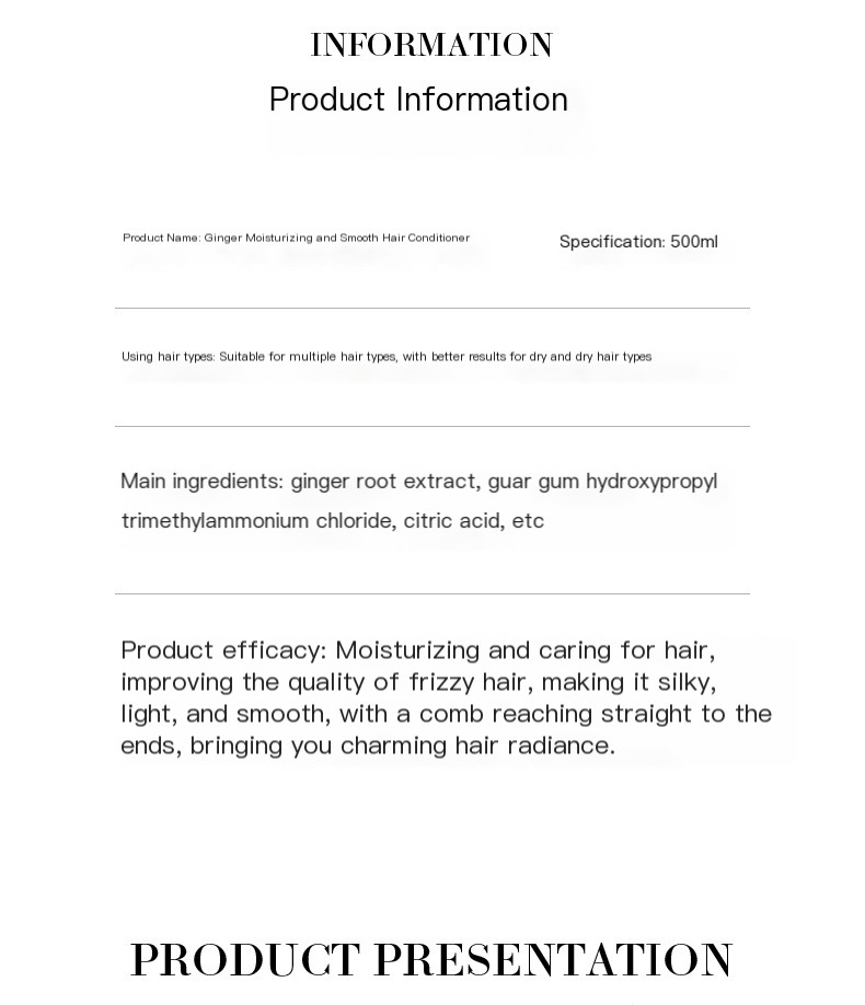 Ingredientes principais: Extrato de raiz de gengibre, cloreto de hidroxipropil trimetil amônio de goma guar, ácido cítrico, etc.