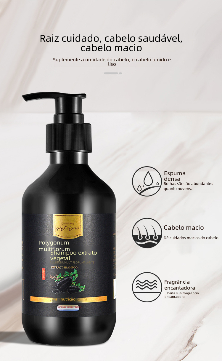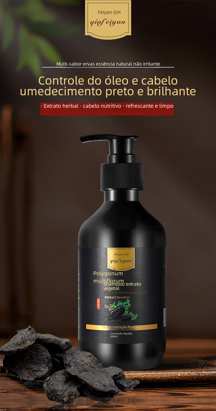 Champú suave a base de hierbas Qinfeiyan con Polygonum multiflorum, antiprurito, control de grasa y anticaspa.