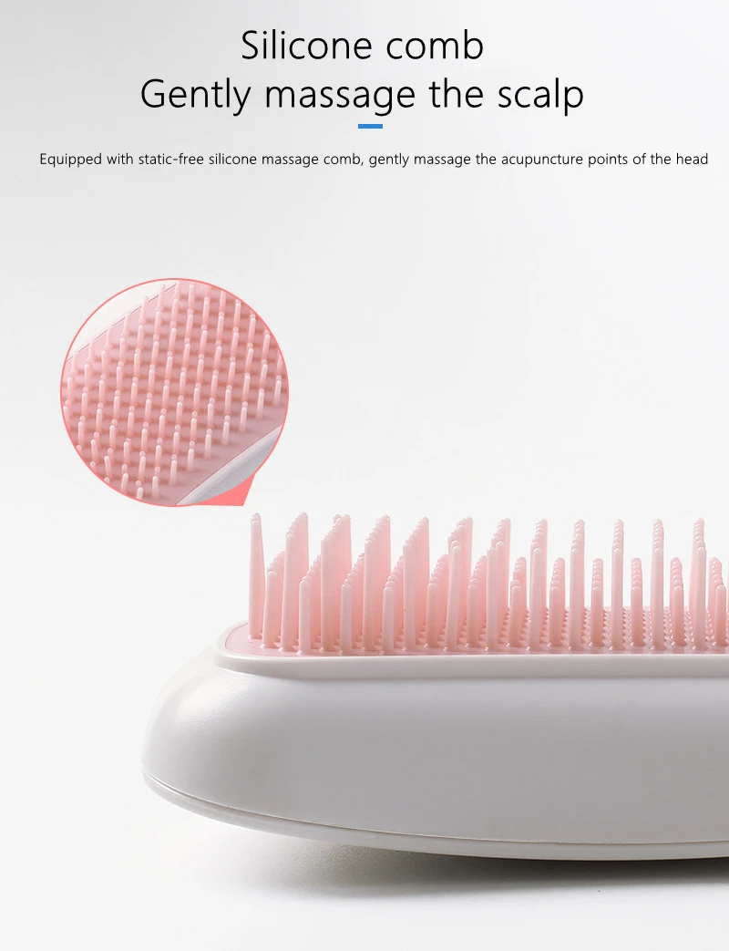3. Dentes de pente de silicone, massageie suavemente o couro cabeludo